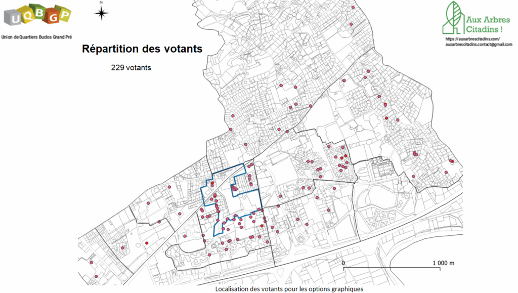 83 votants en présentiel lors de la réunion de restitution du 4 Avril 2025 à la maison de quartier des Buclos : votes par bulletins de vote nominatifs.